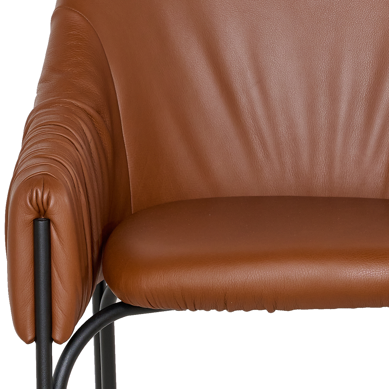 Der Celine Armchair Low, entworfen von der renommierten Designerin Lucie Koldova, verkörpert Eleganz und Komfort in einer kompakten Form. Der Bezug aus feinstem Leder Sahara Cacao 60006, sowohl für die Sitz- als auch für die Rückseite, verleiht dem Stuhl eine exklusive und warme Ausstrahlung.