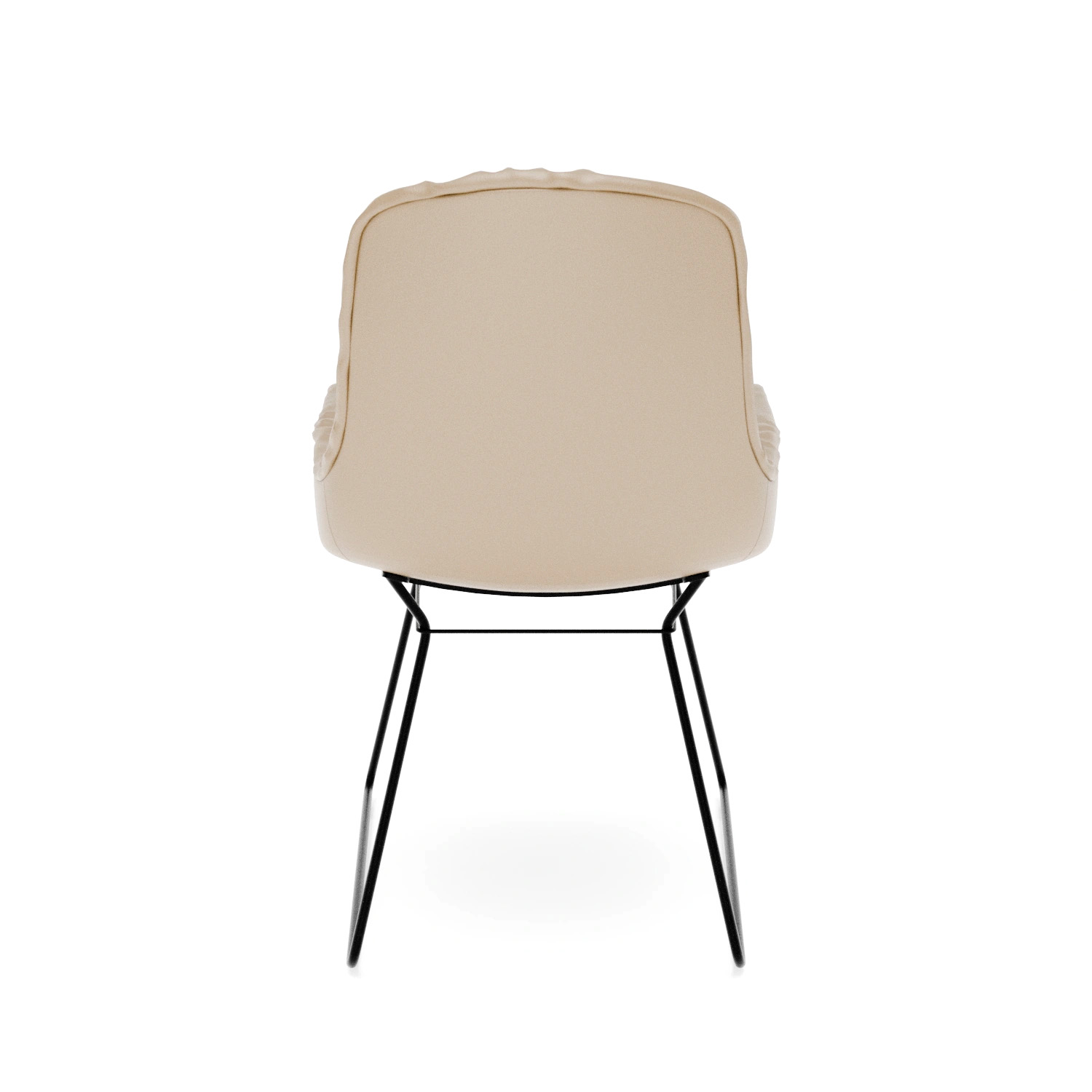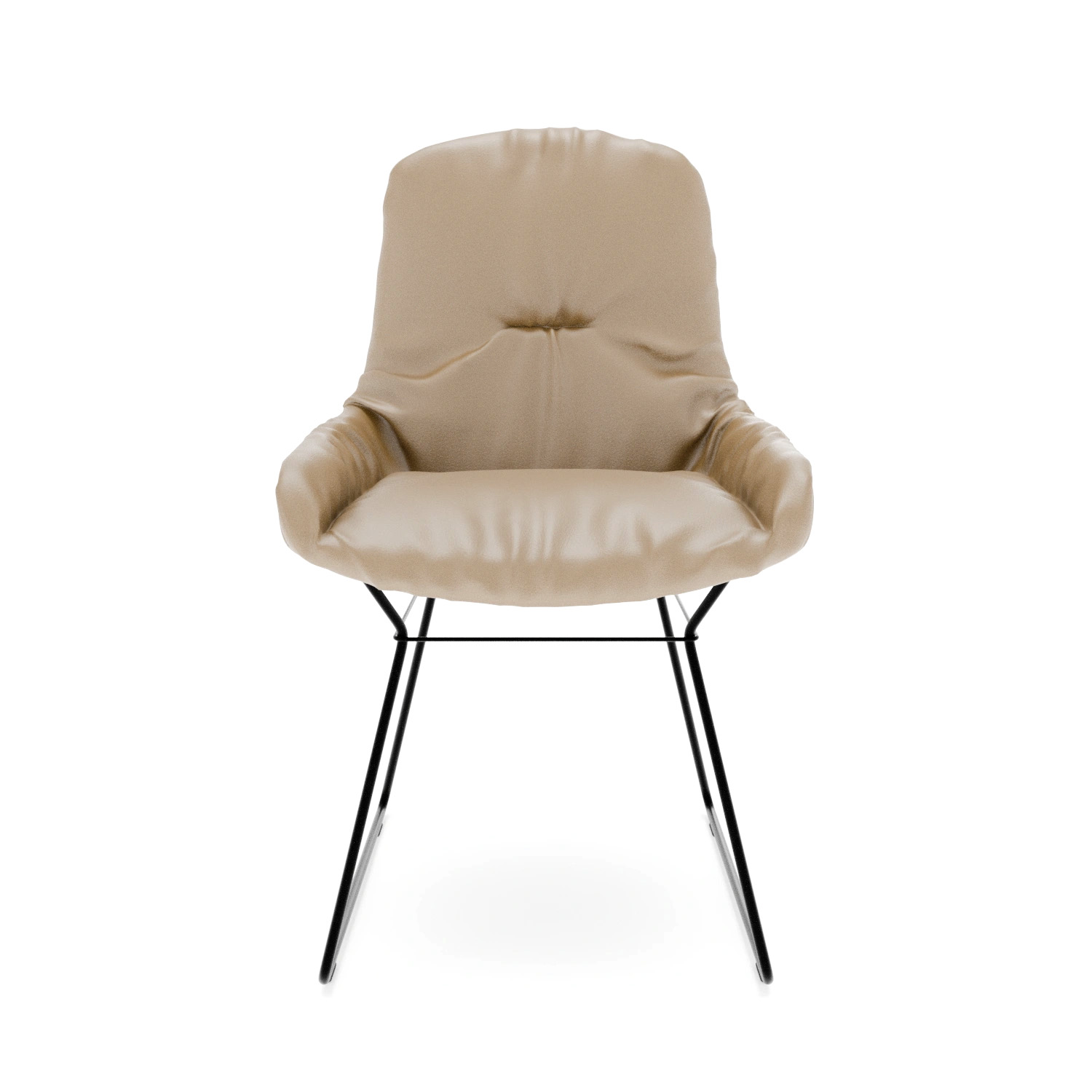 Dieser Stuhl vereint auf einzigartige Weise Gegensätze. Seine straff gepolsterte Schale wirkt klar und gradlinig, doch das Innere birgt ein flauschiges Kissen, das bei jedem Sitzen für ein umhüllendes und komfortables Erlebnis sorgt. Der Bezug aus hochwertigem Leder Sahara Platino verleiht dem Stuhl eine großzügige und einladende Polsterung, die ultimativen Sitzkomfort garantiert.