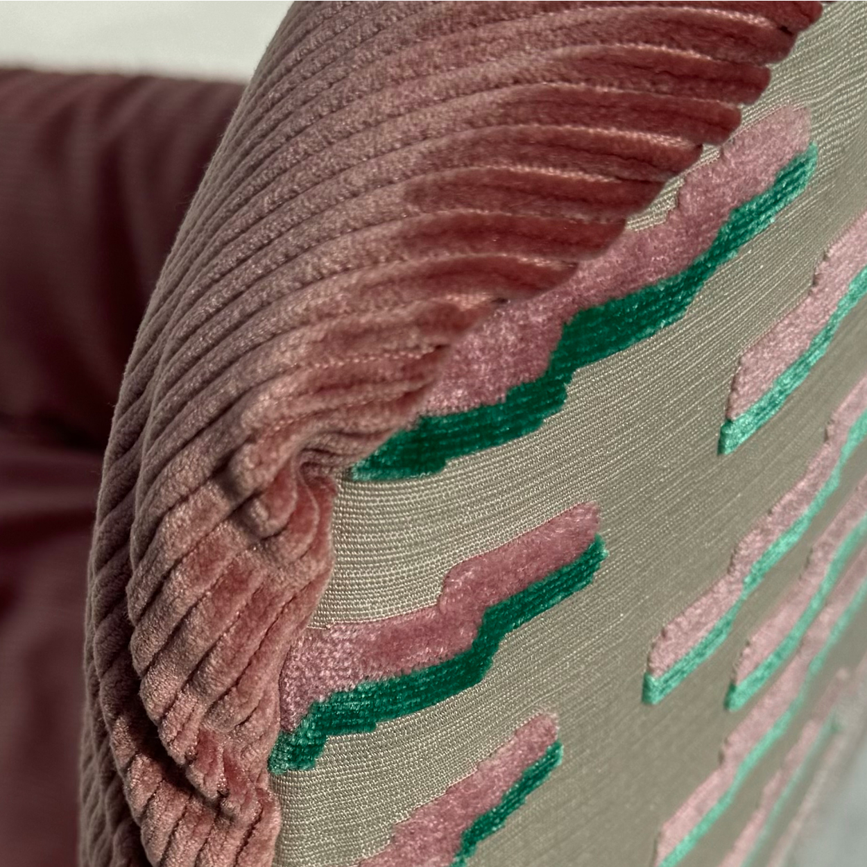 Die Rückseite ist in dem auffälligen Stoff Tiger Beat 005 Menta gestaltet, der mit seinem lebendigen Muster und frischen Grünton dem Stuhl eine markante und originelle Optik verleiht. Diese spannende Kombination aus zurückhaltender Sitzfläche und auffälligem Rücken macht den Leya Lounge Chair zu einem echten Hingucker in jedem Raum.