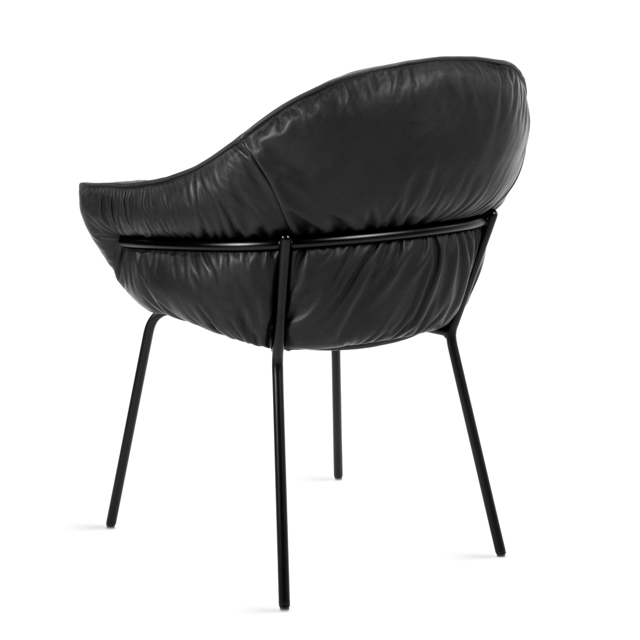 Das 4-Fuß-Stahlgestell in Schwarzchrom (ME400) sorgt für Stabilität und unterstreicht gleichzeitig das moderne Design des Marie Armchair. Die glänzende Oberfläche des Gestells bildet einen harmonischen Kontrast zum schwarzen Leder und verleiht dem Stuhl eine markante, zeitgemäße Ästhetik.