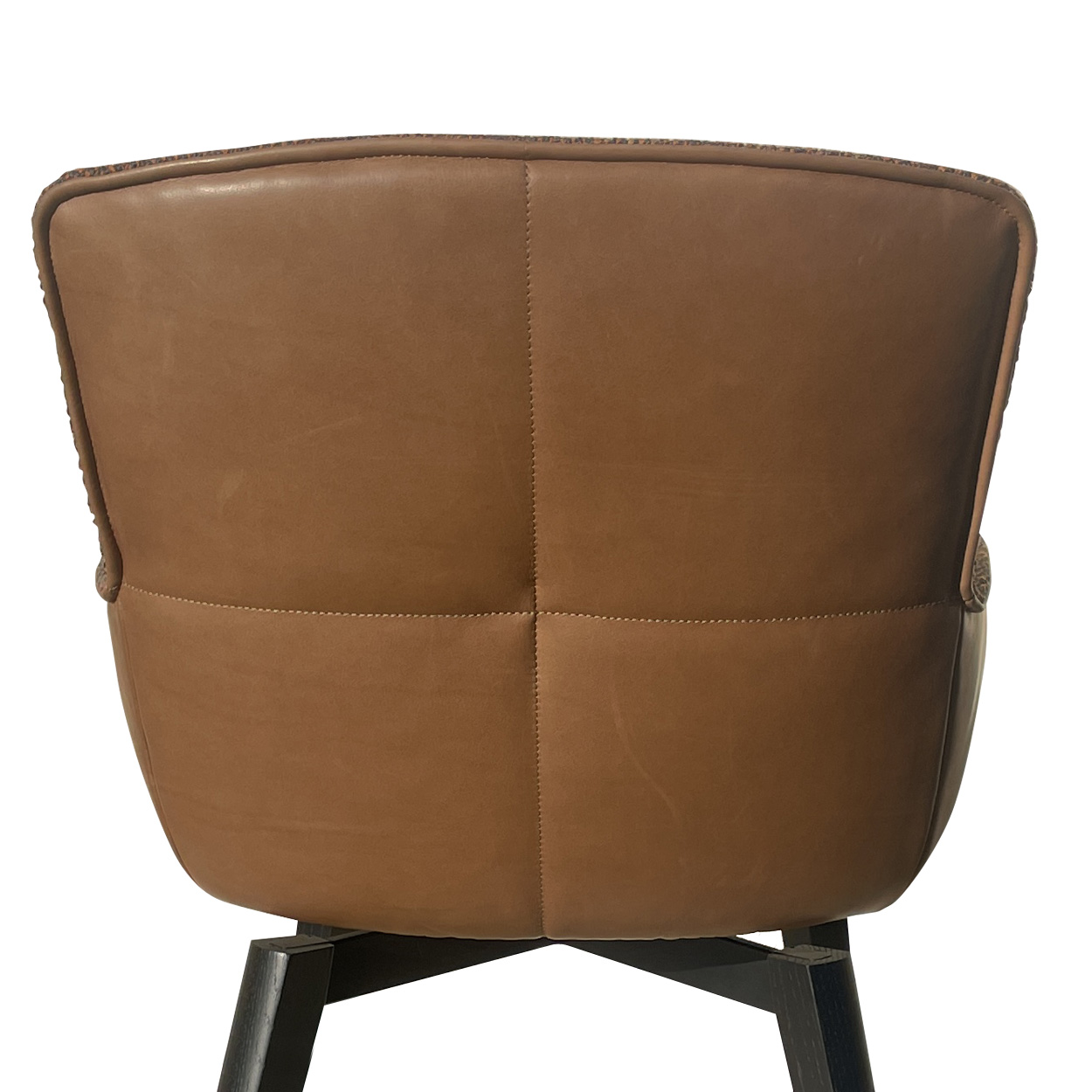 Für Stabilität und eine klare, grafische Linie sorgt das Gestell mit Kreuzzarge, gefertigt in Eiche Schwarz, das dem Sessel eine solide Basis und zugleich eine filigrane optische Präsenz bietet. Die integrierte Dreh- & Rückholmechanik erhöht den Komfort zusätzlich und ermöglicht flexible Bewegungen, ohne die elegante Form zu beeinträchtigen.