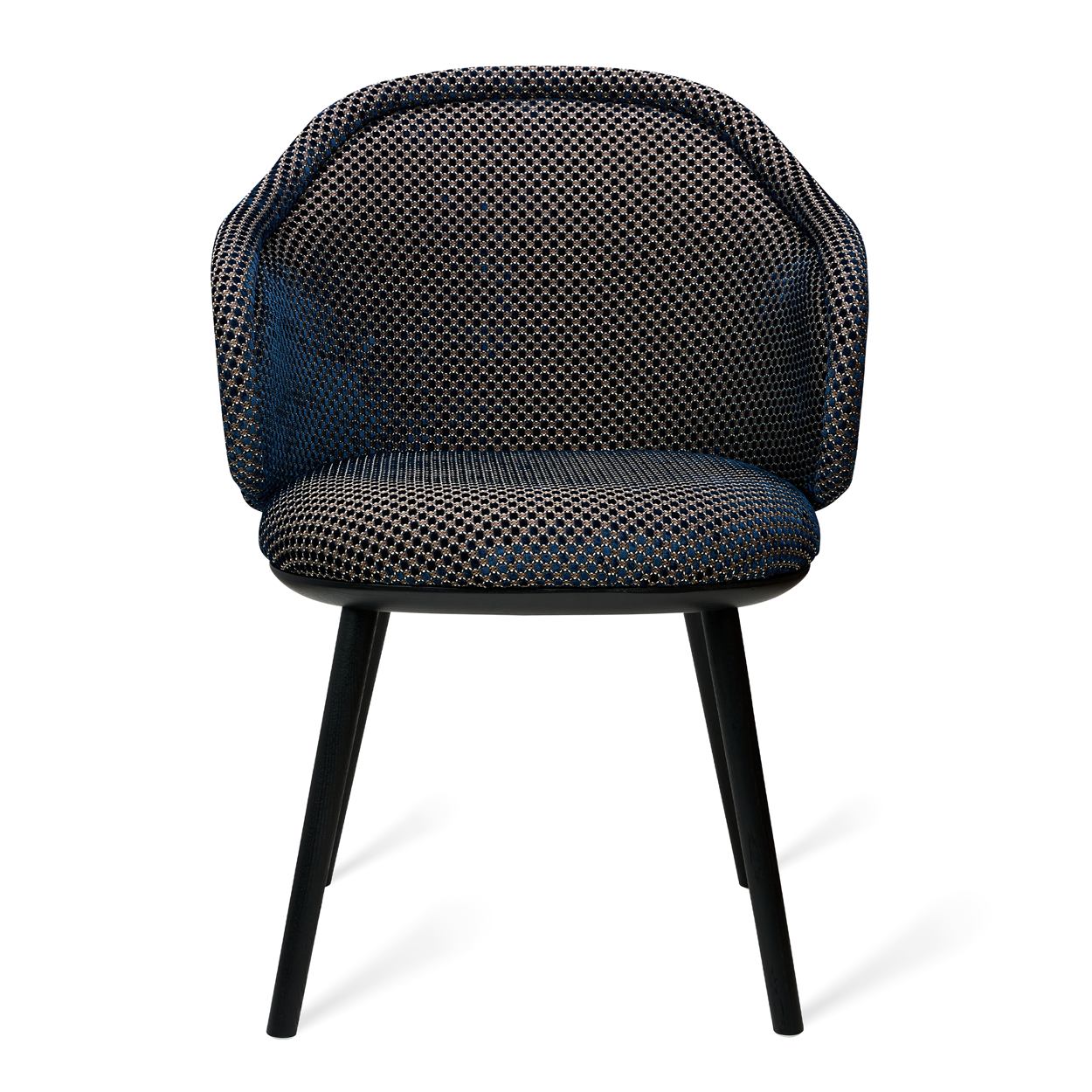 Der Ona Armchair 2020, gestaltet von Sebastian Herkner, besticht durch sein elegantes und zeitgenössisches Design. Dieser in der Uni-Variante komplett mit Stoff Nobilis Raphael 63 Bleu Marine bezogene Stuhl verbindet Komfort mit einem Hauch von Luxus.